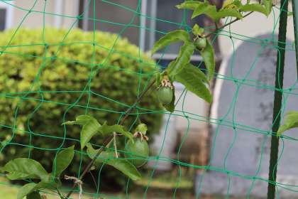 パッションフルーツ園(3個の実)、ひまわりの花、さつまいも畑