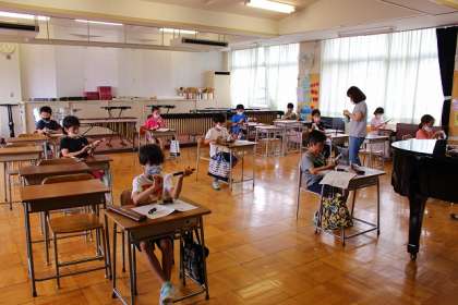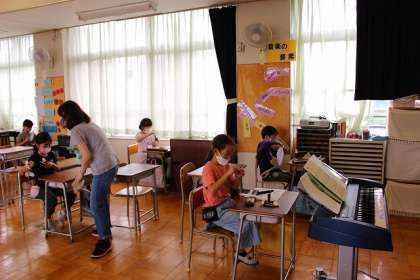 リコーダー練習を終えて・・きれいにお掃除してます。