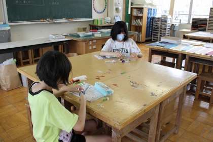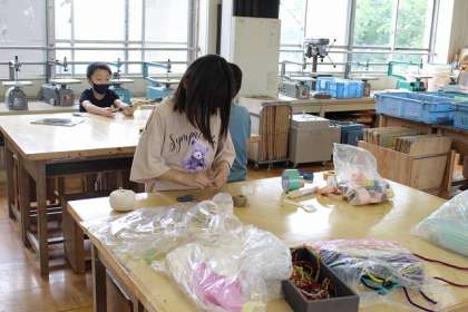 「おもしろ筆」色々な材料を使って、筆をつくっています。