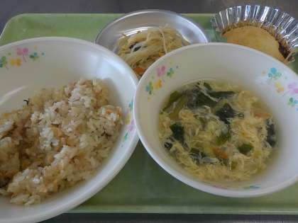 本日の献立:台湾風おこわ、ビーフン炒め、ふんわり卵の中華卵スープ、パイナップルケーキ