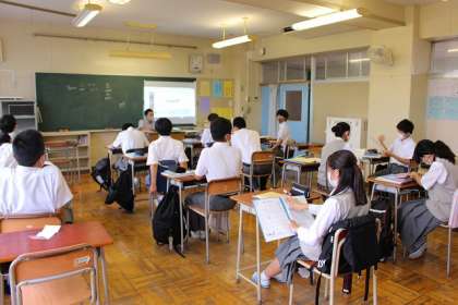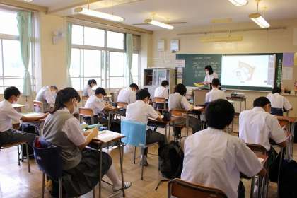 2つのクラスに分かれて「文法の復習」をしています。