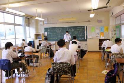2つのクラスに分かれて「2次方程式の利用」を学習しています。