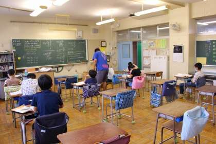 2つのクラスに分かれて「2けたでわるわり算の筆算」をしています。後半部分です。
