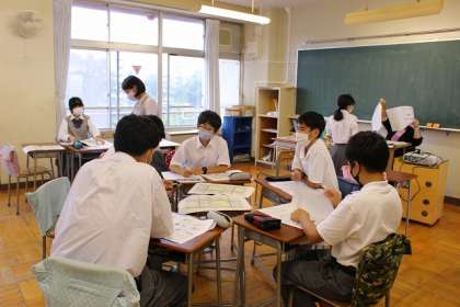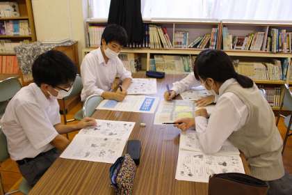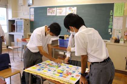 ゲームを通じた防災・減災教育の時間です。中学部の様子です。