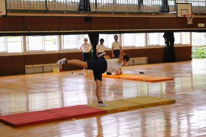 「マット運動」バランスをとっている場面です。