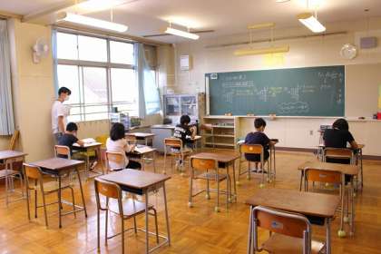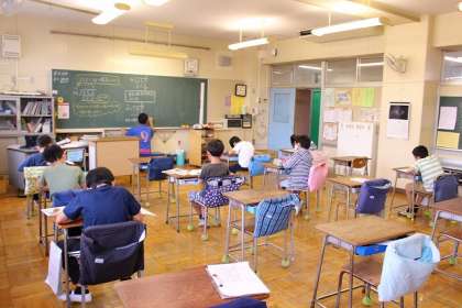 2つのクラスに分かれて「2けたのわり算」の学習をしています。