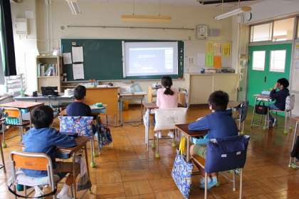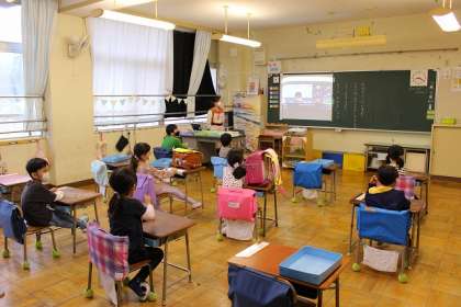 静かに聞いています。「手を挙げてください」の声にこたえて・・