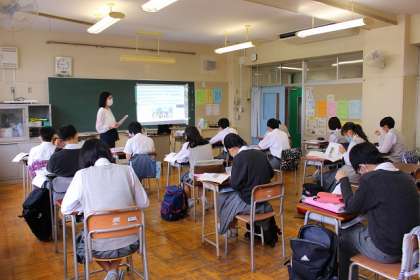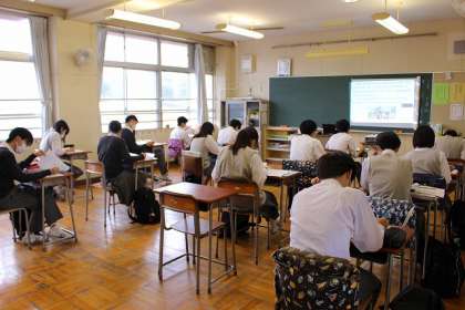こちらのクラスでも、英語プリントに取り組んでいます。