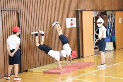 「マット運動」倒立の練習をしています。