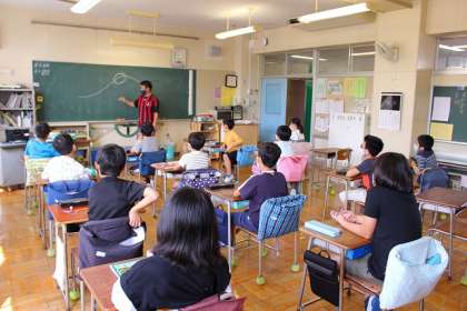 先生の話をしっかりと聞いています。
