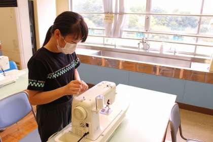 『思いを形に生活に役立つ布製品』ミシンの使い方を復習しています。