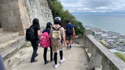 久能山東照宮の階段を降りています。
