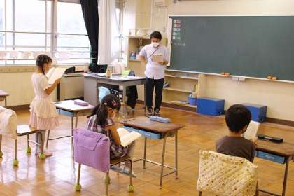 「わにのおじいさんのたからもの」の音読です。オンラインでの参加もありました。