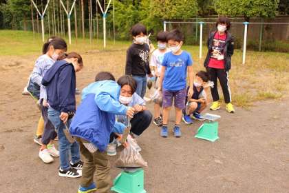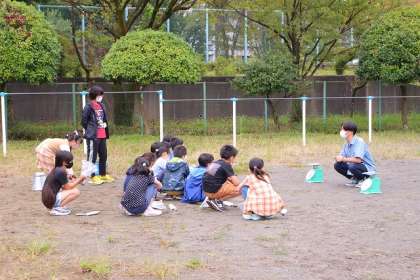 『重さ』の学習です。砂場で、1kgの重さをつくりました。