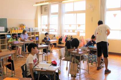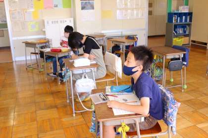 2つのクラスに分かれて「分数のかけ算」の学習です。