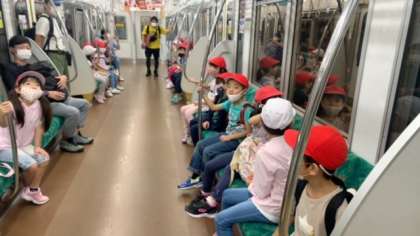 高尾山に向けて、電車にも乗りました。