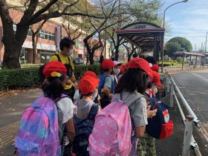 14時14分のバスで学校へ戻ります。