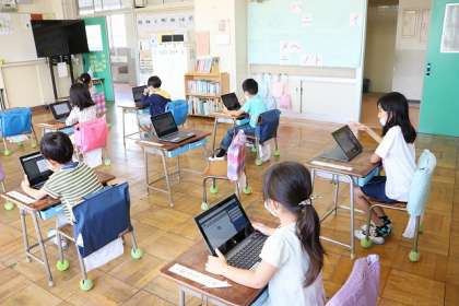 タブレット学習端末を使っています。慣れた手つきに驚きです。2年生は計算をしていました。