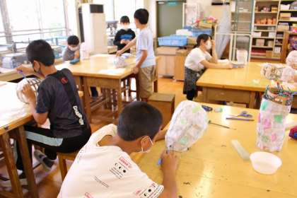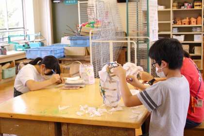 「ランプシェード」骨組みに雲龍紙を張り付けています。