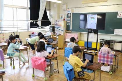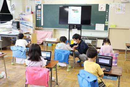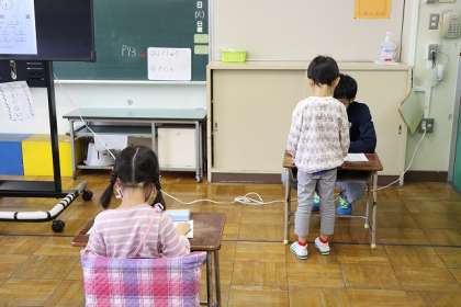 「3つの かずの けいさん」の復習をしています。がんばっています!