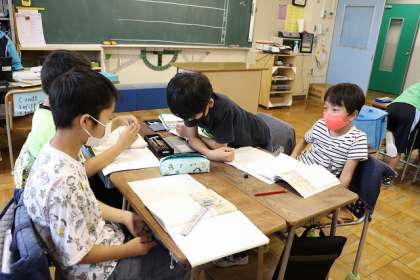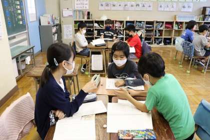 「一つの花」ノートに書いた自分の考えを交流しています。