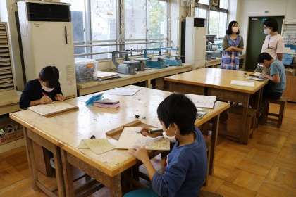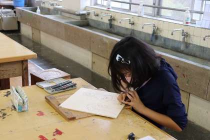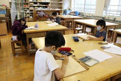 彫刻刀の使い方を確認して、写した絵を彫刻刀で彫り進めます。
