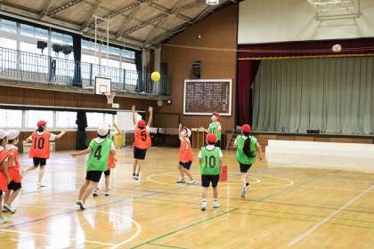 ゴール型ゲーム(ポートボール)試合をはじめます。
