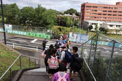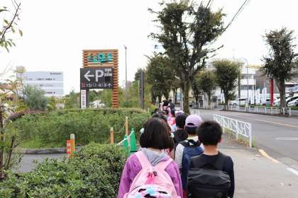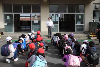 出発式です。これから、東浅川交通公園に向かって歩きます。