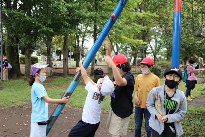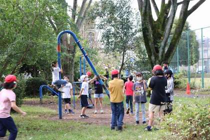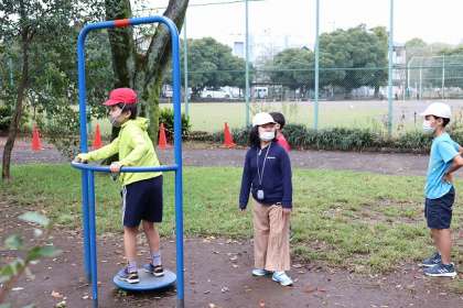 東浅川交通公園に到着しました。早く着いたので遊具等で遊んでいます。