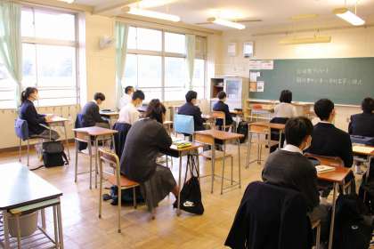 「そのプログラムと同じ内容のプログラムを、プロフィギアスケーターの織田信成さんが挑戦するという動画が先日ニュースになりました。約6分間の演技の後半では、息も荒く、苦しそうでした。浅田さんのプログラムの難度の高さに『いやー、大変です』と汗びっしょりになり挑戦しました。『男性でもこんなに大変なプログラムを毎日毎日練習していたと思うとすごいと思います。改めて尊敬します』と彼女の想像を絶する努力に気付かされた言います。先週の合唱祭では、中学部の生徒の皆さんが、それまでの先輩と同じように、いやそれ以上に、素晴らしい歌声を響かせてくれました。小学部の5、6年生もとてもいい経験をさせてもらいました。先輩やその他の素晴らしい先人たちの演技や記録は、それ自体がお手本になります。そのお手本にいかに近づけるか、いかに超えていくかという努力が大切です。小学部では、学芸会もあります。何回もセリフを覚えたり、大きな声を出したり、歌を覚えたり、大変だと思いますが、がんばって大きな行事を成功させてください。」(聴き入る児童・生徒たち)