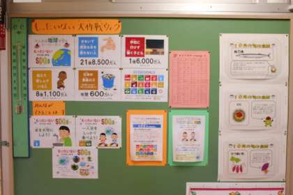 山田先生より、お話がありました。「19日から22日までの4日間『もったいない大作戦』を実施します。」食べ物たいする感謝の気持ちと給食の残菜を削減し、ゼロを目指します。(掲示物もご覧ください)