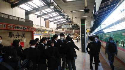 開校式の後、いよいよ新幹線で金沢に向かいます。