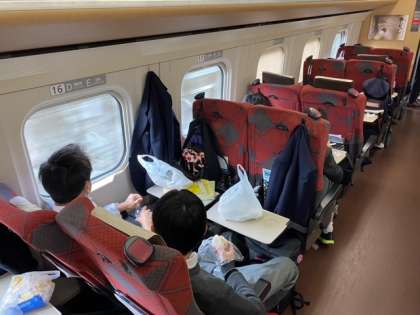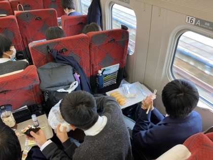 新幹線の車内で、昼食です。朝が早かったのでお腹もペコペコです。