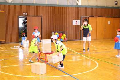 ボール投げゲームがスタートし、全力プレーです。