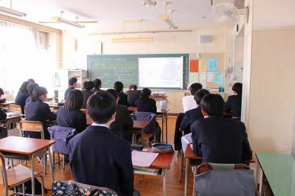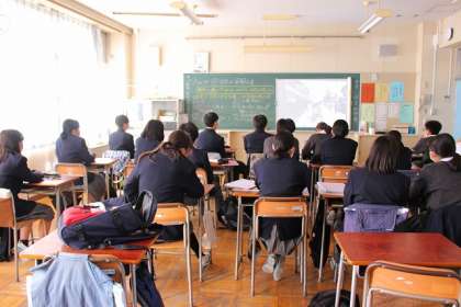 「日本の平和主義」学習の後、動画を視聴しています。