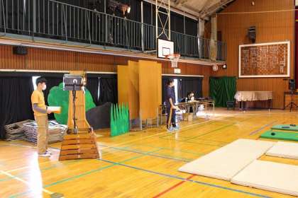 体育館での練習です。照明等の係も担当しています。