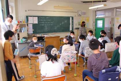 ALTの先生・担任の先生と一緒に、ゲームをしながら学習しています。