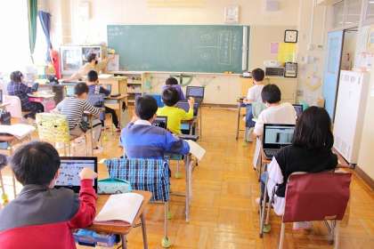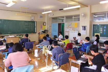 タブレット学習端末を使って「ごんぎつね」の学習を進めています。