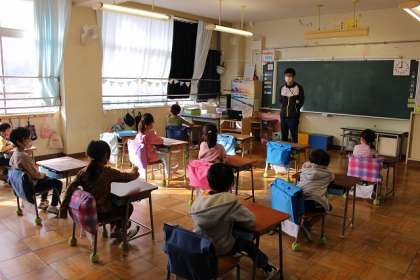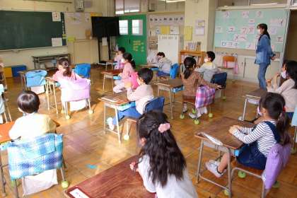もうすぐリハーサルです。先生からのお話を聞いています。