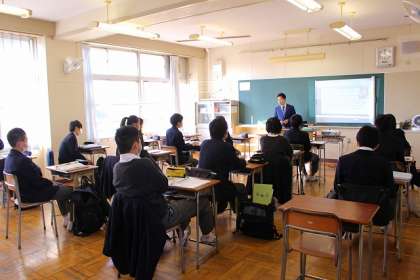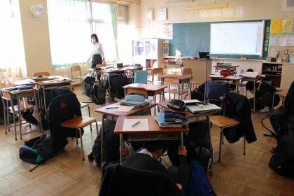 突然の放送「今地震が発生しました。机の下に・・」にさっと静かに動く姿がありました。さすがです。その後、先生からほめていただいています。