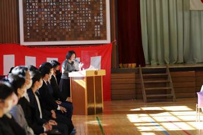 午前11時、体育館での記念式典がはじまりました。
