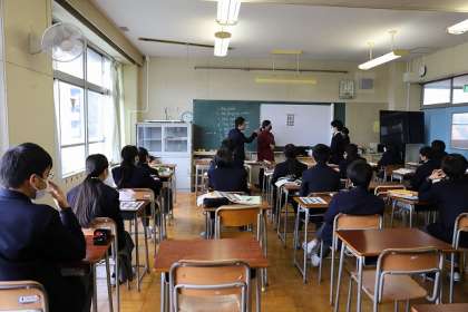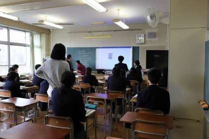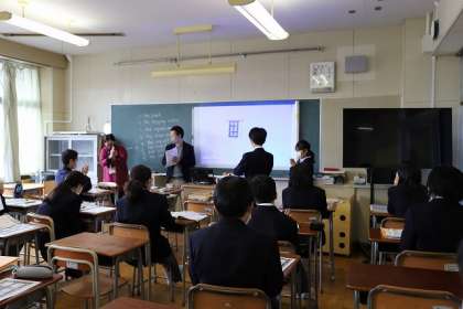 道案内をする場面です。行先について質問する人、答える人となり学習しています。
