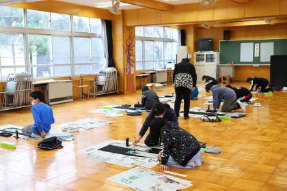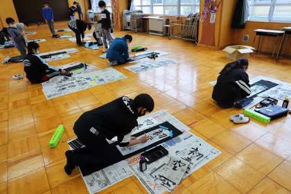 地域連携室で「書き初め」に挑戦です。小野先生よろしくお願いします。