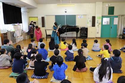 東京文化会館よりピアノとヴァイオリンの演奏者をお迎えしてコンサートのはじまりです。