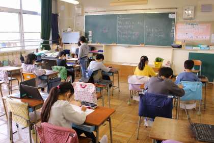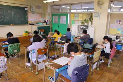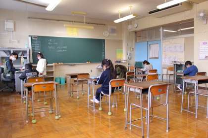 2つのクラスに分かれて「分数のたしかめテスト」をしています。