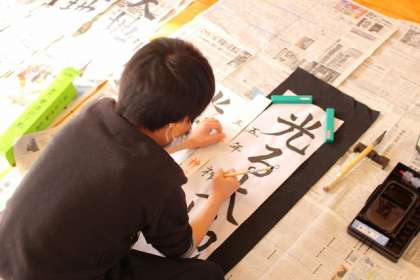 「光る大地」と書いています。何枚も練習しました。