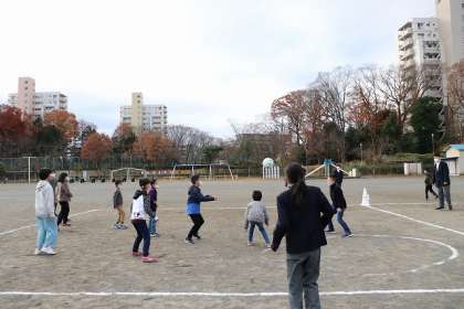 小学部企画による「小中合同集会」です。小中合同ドッジボール大会です。中学生は利き手と反対の手で投げます。スタート時は動きがゆったりでしたが、スピードがアップするにつれ、歓声が聞こえてきました。