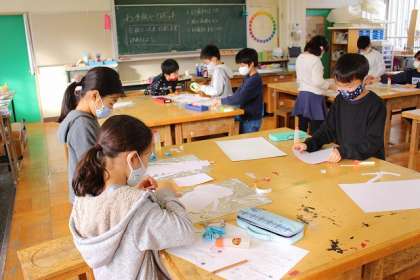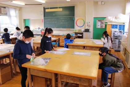 『お手伝いロボット』作ったロボットを台紙に貼ります。