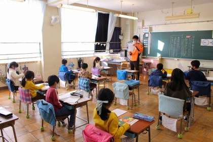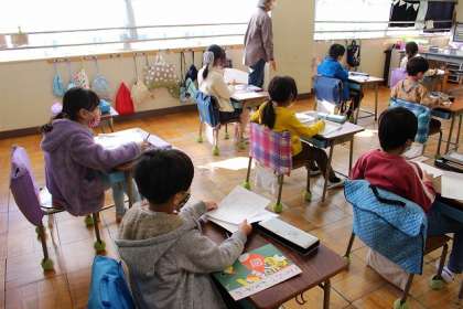 書き初めをしよう。よい姿勢で落ち着いて書きます。