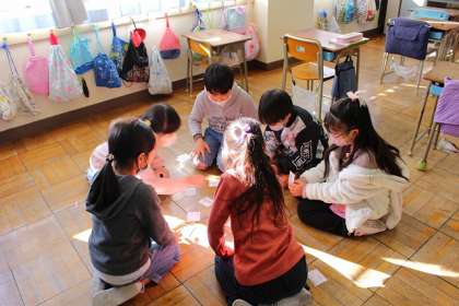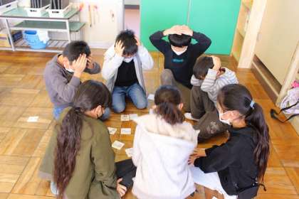 自分たちで作成した「ことわざカルタ」で遊んでいます。